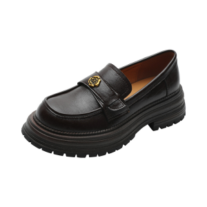 Thick-soled camellia loafers women’s 2025 new vintage brown casual round toe pumps british small leather shoes