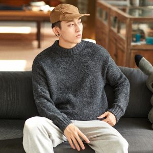 Sweater men’s winter sweater men’s half turtleneck off the shoulder comfortable loose models men’s sweater men’s warm tops
