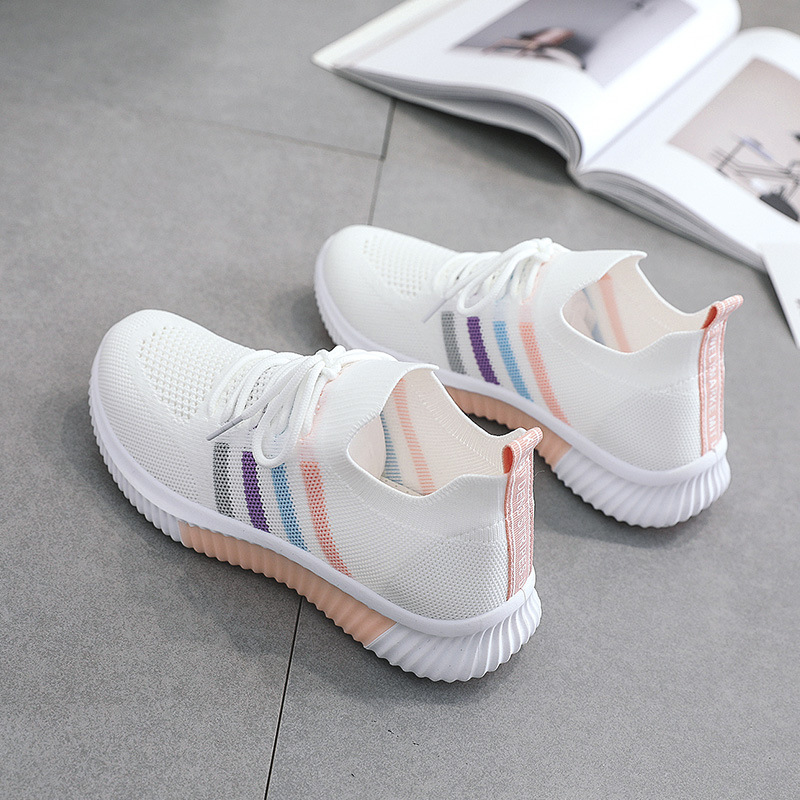 Summer colorful striped low-top sneakers, casual and versatile white shoes, fly-woven mesh mesh shoes, flat-soled students Upper material: fly knitted thread Sole material: rubber Applicable gender: Female Upper height: low Sole technology: injection molded shoes Wearing method: front tie Popular elements: sewing thread Function: anti-slip, wear-resistant