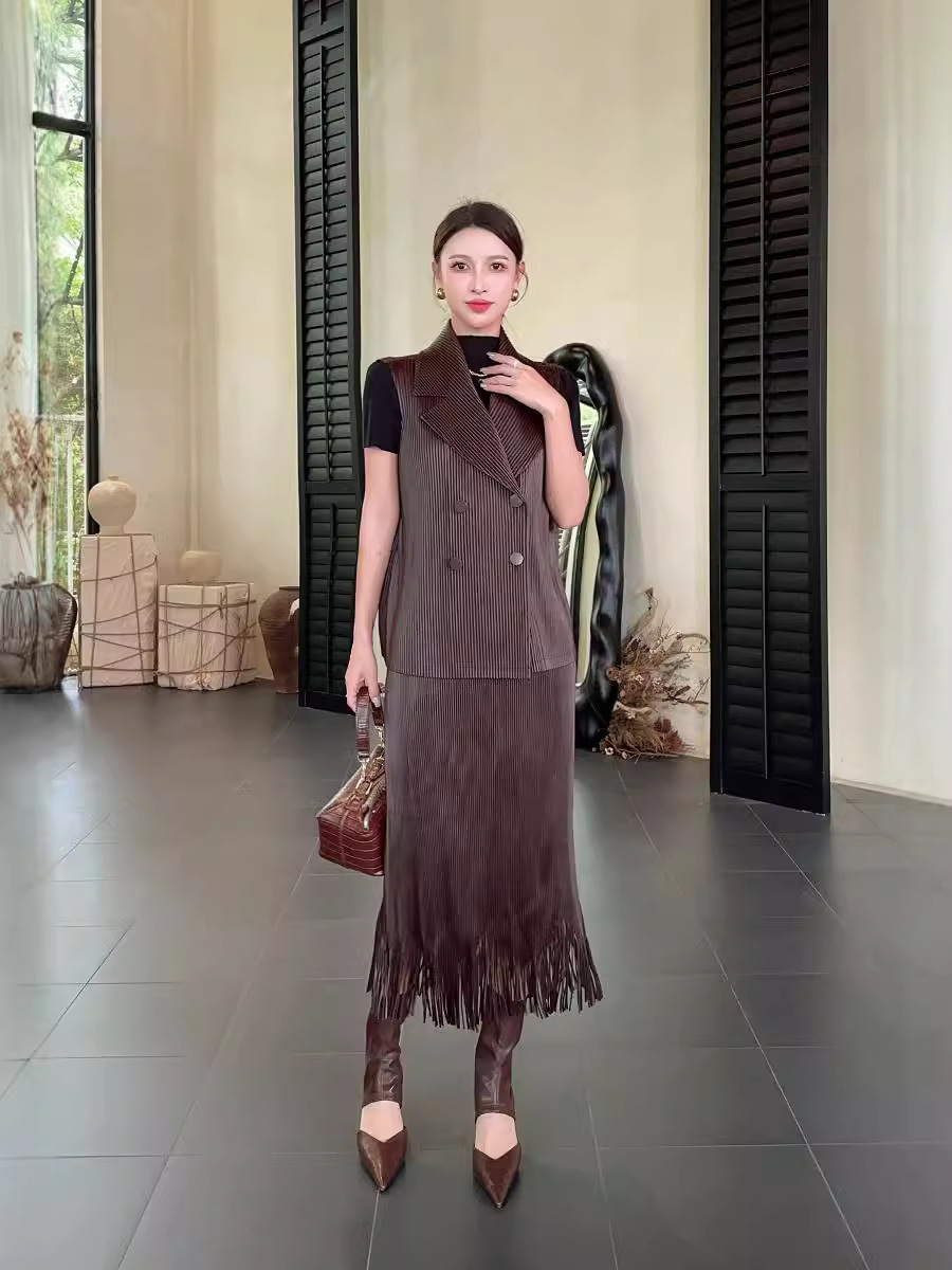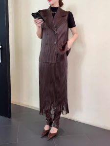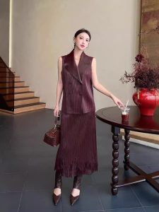 Miyake pleated fashion 2024 summer new women’s suit skirt high-end retro style pleated skirt long skirt