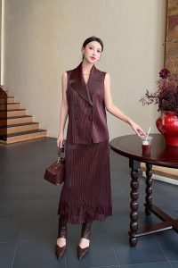 Miyake pleated fashion 2024 summer new women’s suit skirt high-end retro style pleated skirt long skirt Fabric name: Polyester Main fabric composition: polyester (polyester fiber